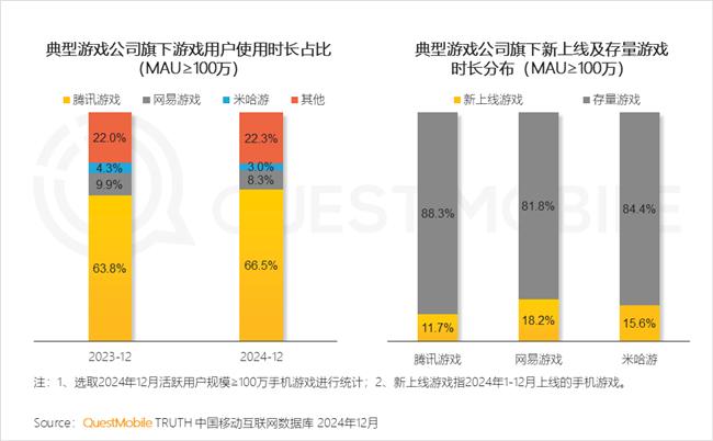 II. 頭部游戲大廠占據用戶”注意力“高地,新上線游戲持續鞏固市場份額