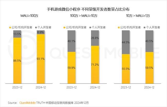 V. 小游戲開發愈加成熟,更多公司及機構加入,個人開發者占比降低