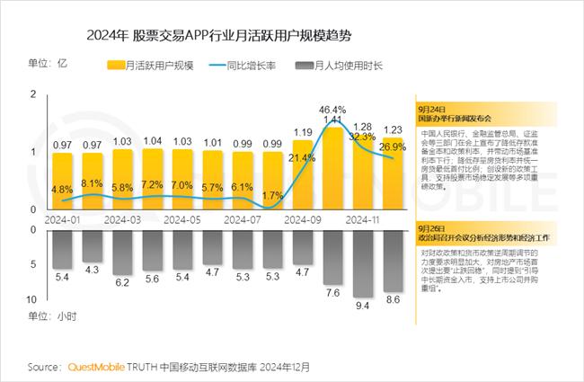 2.2 2024年9月末的多項利好政策帶動滬深股市交易熱潮,股票交易APP行業流量隨之上漲,在10月份達到增長峰值