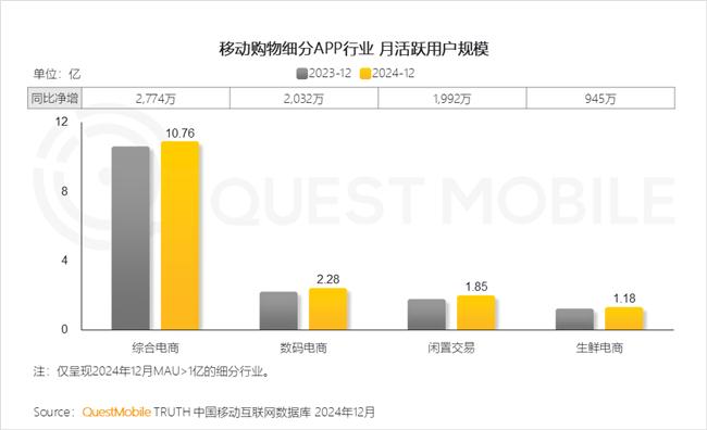 I. 線上購物平臺用戶規模持續增長,綜合電商、數碼電商行業流量同比增長超過2000萬