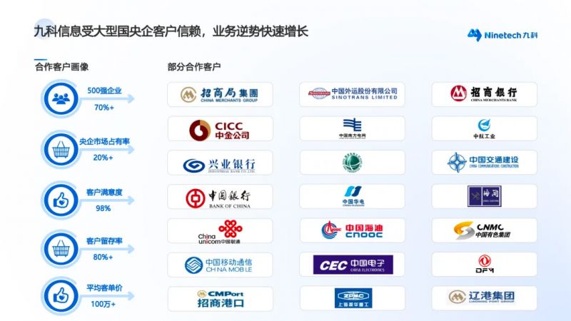 能在各細分賽道都獲得大量國央企客戶認可,九科信息的“國央企智能自動化專家”身份毋庸置疑。