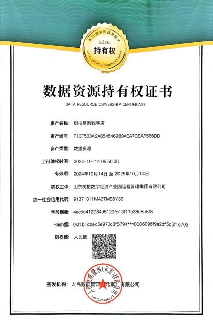 通過數據確權,山東樹拍數字集團能夠更加規范、安全地利用數據資源,為平臺的精準運營、創新服務提供有力支撐。例如,基于準確的數據資源,平臺可以為商戶提供更精準的消費趨勢、市場需求等關鍵數據支持,幫助中小企業和創業者把握市場機會,實現精準營銷。