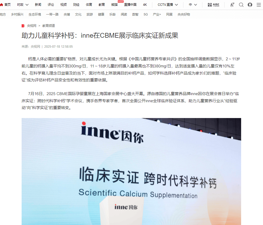 近日,源自德國的兒童營養品牌inne因你連續第三年亮相CBME國際孕嬰童展,展會首日,inne與央視網聯合舉辦的"臨床實證:跨時代科學補鈣"學術會議隆重召開,開創性地確立了"臨床實證"科學選鈣金標準,引發行業從矚目。此次會議不僅吹響了行業科學化升級的號角,更彰顯了inne以科學營養托舉全球兒童健康成長的堅定承諾,受到央視網、新華網等權威媒體報道關注。
