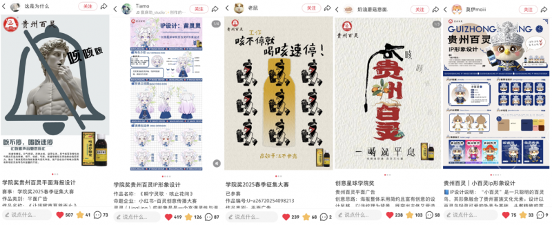 在2025春季征集活動中,青年學子們迸發的創造力令人驚嘆。16195件原生創意內容是青年人對品牌的深刻解讀。他們將品牌文化及咳速停糖漿的產品功效融入溫情脈脈的視頻短片,傳遞“陪伴與治愈”;為貴州百靈設計極具設計感的IP形象;創作系列平面及文案,用國潮視覺重構苗藥文化,借整合營銷策劃打通線上線下場景……這些作品不僅彰顯了Z世代的創造力,更在內容中深度融合苗藥基因與現代化表達,顯著提升了貴州百靈在青年群體中的認知度與好感度。苗藥,這個曾經帶著神秘色彩的詞匯,通過年輕人的奇思妙想,變得可親、可感、可傳播,煥發出前所未有的時代魅力。