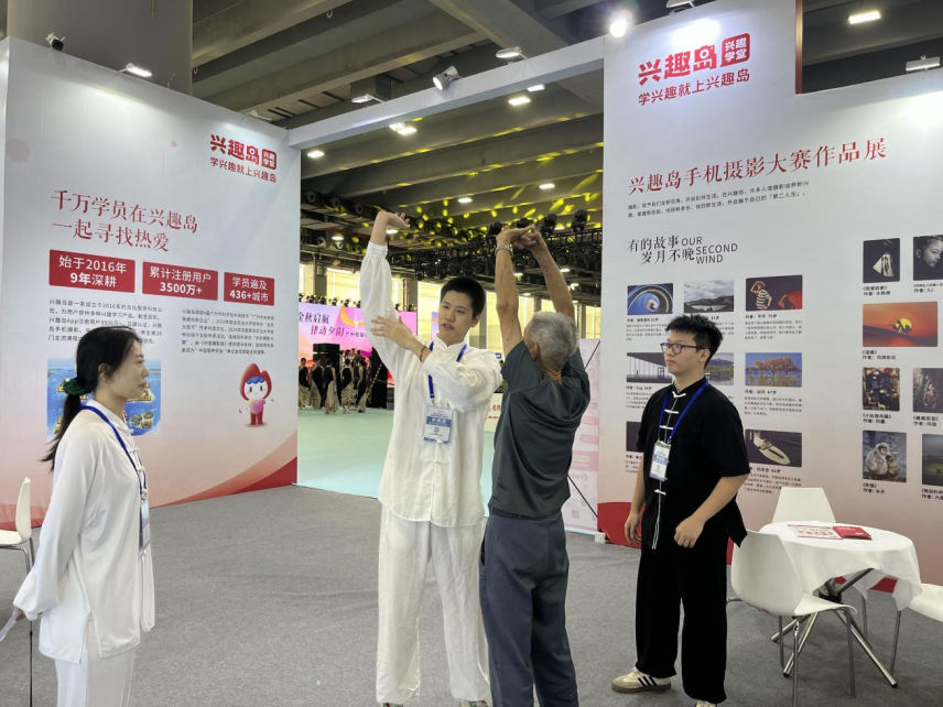 本次展會涵蓋智慧養老、適老化煥新等八大展區。興趣島以“文化賦能銀齡生活”為主題,圍繞特色興趣學習服務,設置了優秀攝影學員作品展、名師書法教學體驗、八段錦體驗等活動,吸引眾多觀眾駐足了解、現場體驗。