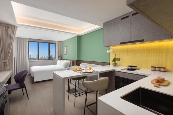 上海五角場輝盛名致服務公寓設有307間精致時尚公寓,重新定義現代居住體驗——這里不僅是暫居地,更是靈感碰撞、鄰里相知的生活聚場。從30平方米的豪華單間,到95平方米兩居室,每間公寓均秉持空間靈活性與可持續理念,配備現代化廚房、家庭娛樂系統、50寸LED電視及洗衣烘干一體機等高端設施,全面滿足單身、雙人及小型家庭的多樣居住需求。