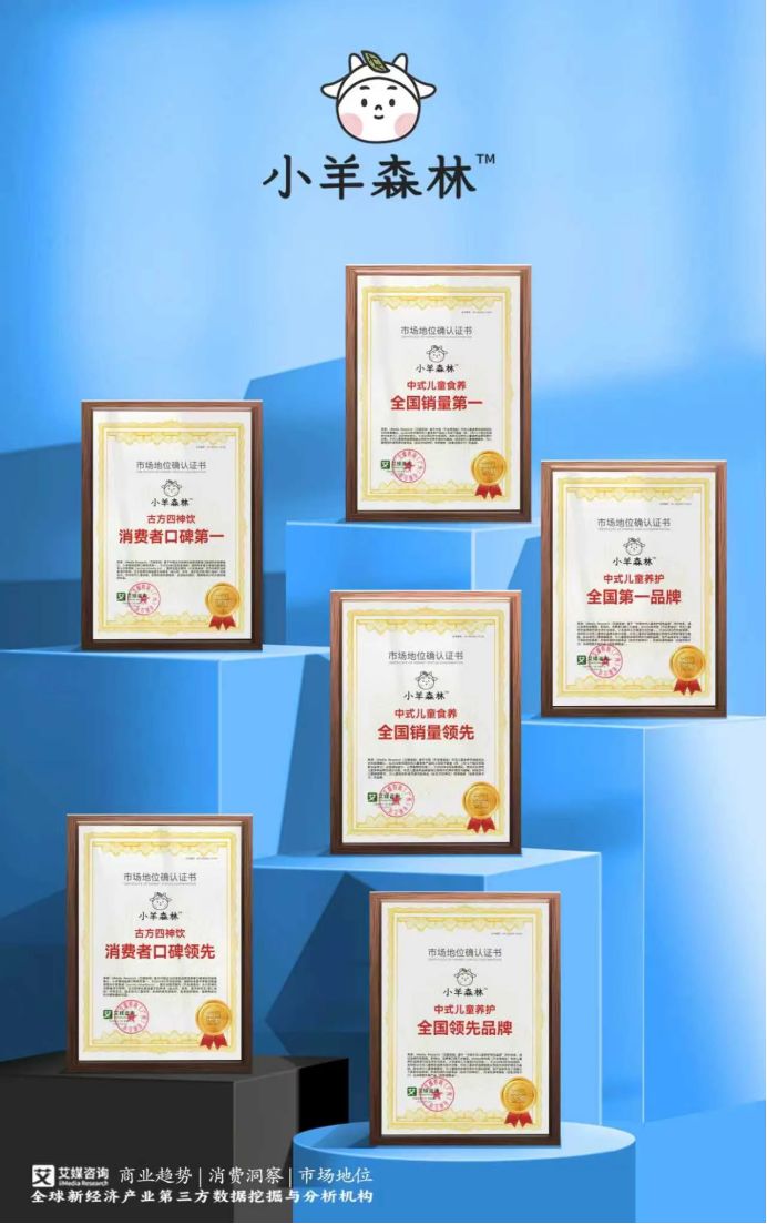 基于艾媒自主研發并獲得省部級重大科技專項立項的CMDAS大數據系統監測及嚴格的調查,以及對中國(不含港澳臺)中式兒童食養、養護及古方四神飲消費者口碑市場研究比對的結果進行統計確認,小羊森林榮獲全球領先的新經濟產業第三方數據挖掘和分析機構iiMedia Research(艾媒咨詢)授予“中式兒童食養全國銷量第一”“中式兒童食養全國銷量領先”“中式兒童養護全國第一品牌”“中式兒童養護全國領先品牌”“古方四神飲消費者口碑第一”“古方四神飲消費者口碑領先”六項市場地位確認。