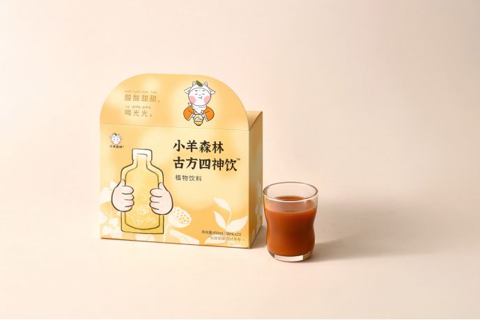 其中,作為核心產品的古方四神飲,是小羊森林傳承和創新理念的縮影。其產品靈感源自經典食養四神湯,原方含茯苓、淮山藥等成分,雖具健脾祛濕之效,但蓮子收澀易致兒童便秘,且功效較為單一。