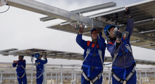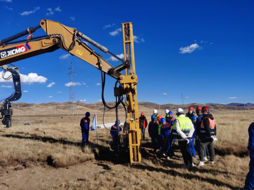 項目建設過程中,面臨著高海拔、極寒天氣帶來的多重挑戰。項目地處海拔4000米區域,平均氣溫低至-20℃,施工現場凍土層深厚,打樁作業難度極大,如同“在石頭上插筷子”,精度和穩定性控制難度高,嚴重影響施工進度。為攻克這一難題,中建八局項目團隊多次開展實驗,最終決定選用PHC管樁代替傳統灌注樁,在提升樁基穩定性的同時加快施工進度。同時,團隊采用履帶式高原打樁機,并搭配三維可視化管樁定位技術,大幅提升施工效率與精度。憑借科學的施工方案和高效的執行能力,項目團隊僅用128天就完成了46299根基礎樁、5427組支架與組件、13.86公里集電線路、1000公里低壓直流線路、44公里低壓交流線路、34臺箱變、373臺逆變器、1臺站用變、1座匯集站以及7.35公里新建道路的建設任務,創造了高海拔地區新能源項目建設的高效典范。