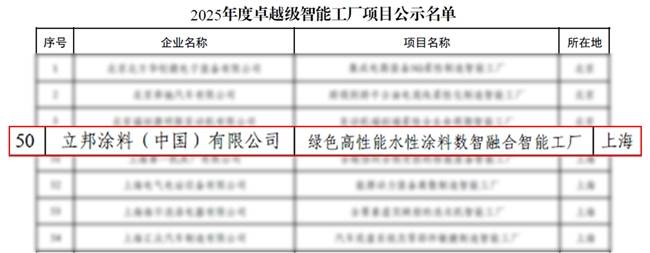 立邦智能工廠項目獲評“2025年度卓越級智能工廠”