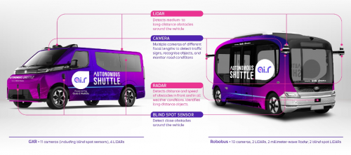 Ai.R車隊將采用文遠知行的兩款產品:可坐5名乘客的Robotaxi GXR與可坐8名乘客的Robobus。這兩款產品均已通過新加坡嚴格的Milestone 1(M1)認證,是首批獲得該認證的專為榜鵝服務的自動駕駛車輛。