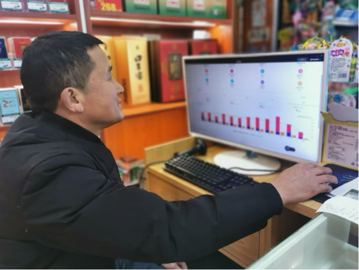 借鑒浠水煙草幫扶農網店鋪的成熟經驗,蔡經理與縣局客服部一道,結合當地“山水田園”的鄉土特色,為董響林制定了“顏值+內核”雙提升的改造方案。一是硬件煥新,打造鄉村消費新場景:團隊從整店規劃入手,重新劃分卷煙銷售區、日用品區、農產品專區三大功能區;墻面繪制浠水本地稻田、荷塘等鄉土元素彩繪,讓小店與鄉村景致自然融合;更換老舊貨架,采用“前高后低、分類陳列”方式擺放商品,統一規范價簽,讓顧客找貨一目了然。僅1個多月,原本“灰頭土臉”的小店煥然一新,明亮的燈光、整潔的貨架、充滿鄉土氣息的裝飾,成了鄉村小道上一道亮眼的風景。二是數字賦能,激活經營“智慧內核”:針對董響林“記賬靠本子、庫存心里沒數”的痛點,團隊手把手教他使用“知音通”系統,將卷煙、非煙商品全部納入掃碼銷售范圍。如今,董響林每天打開系統就能清晰查看進銷存數據、核算收支盈虧,還能通過消費記錄為常客“畫像”。此外,他還學著建立村民微信群,不定期發布促銷信息、發起搶紅包互動,推出“訂單滿59元免費送貨上門”服務,用線上運營擴大店鋪宣傳半徑,滿足村民“足不出戶輕松購物”的需求。