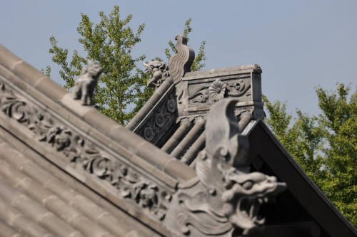 錯落有致的正脊花脊,栩栩如生的脊獸、垂脊獸在這里隨處可見。但是,建設初期脊獸圖紙均為參考尺寸,與傳統古建脊獸尺寸關系不對應,如何做好二次創作和設計深化成了中建八局團隊面臨的一大難題。團隊成員不斷翻閱當地典籍搜羅舊照片、建立脊獸資源庫使用電腦模擬遠、中、近三種觀賞視角推敲尺寸,再有序放大,并邀請非遺傳承人團隊進行手工泥胚制作,最終實現了實脊花紋連貫流暢、脊獸與建筑風格完美搭配的效果。