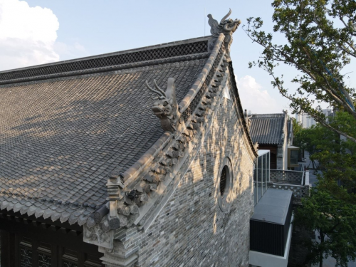 在建筑材料的運用上,項目更是將匠心融入每一處細節:累計使用青磚180萬塊,以不同色調巧妙搭配,輔以6種精準尺寸,創新衍生出17種傳統與現代結合的砌筑形式;灰瓦用量達195萬余塊,細分冷、中、暖3類色調,適配3種專業瓦屋面施工工藝,確保屋面既有古韻質感,又具備現代建筑的耐用性。其中,項目東側院落特意選用偏暖色調的青磚,與周邊古城垣的黃色肌理相呼應,在色彩碰撞間勾勒出最具鄭州商代都城特色的建筑輪廓,讓歷史的厚重與建筑的美感渾然一體。
