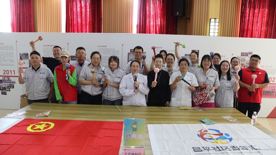 青年團員們則同步開展“中醫義診+手作工坊”的雙體驗活動。現場設立健康體驗區,為青年團員們提供免費的中醫號脈問診、健康檢測及咨詢服務。在手作工坊,青年們則親手制作艾草錘——從挑選樣式、編制彩繩到塑型定型,每一步都凝聚著對傳統養生智慧的傳承。艾草清香與歡聲笑語交織,繪成了一幅生動的青春畫卷。
