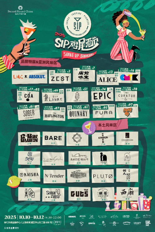 2025年10月8日,上海—— 由國際知名烈酒集團保樂力加傾力打造的首屆SIP雞尾酒節將于10月10日至12日于BFC外灘金融中心舉辦。三十余家來自亞洲及中國本土的先鋒酒吧將閃耀上海外灘,打造一站式亞洲雞尾酒體驗場。不論是專業調酒師、雞尾酒老饕還是初探雞尾酒世界的愛好者,都可在這場為期三天的雞尾酒文化之旅中收獲靈感、體驗與連接。