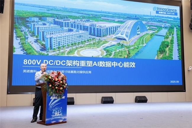 英諾賽科研發副總裁王懷鋒先生重點展示了基于氮化鎵技術的800V供電架構,通過提升功率密度和轉換效率,實現98%以上的能效表現,為下一代數據中心能效重塑提供了重要技術路徑;