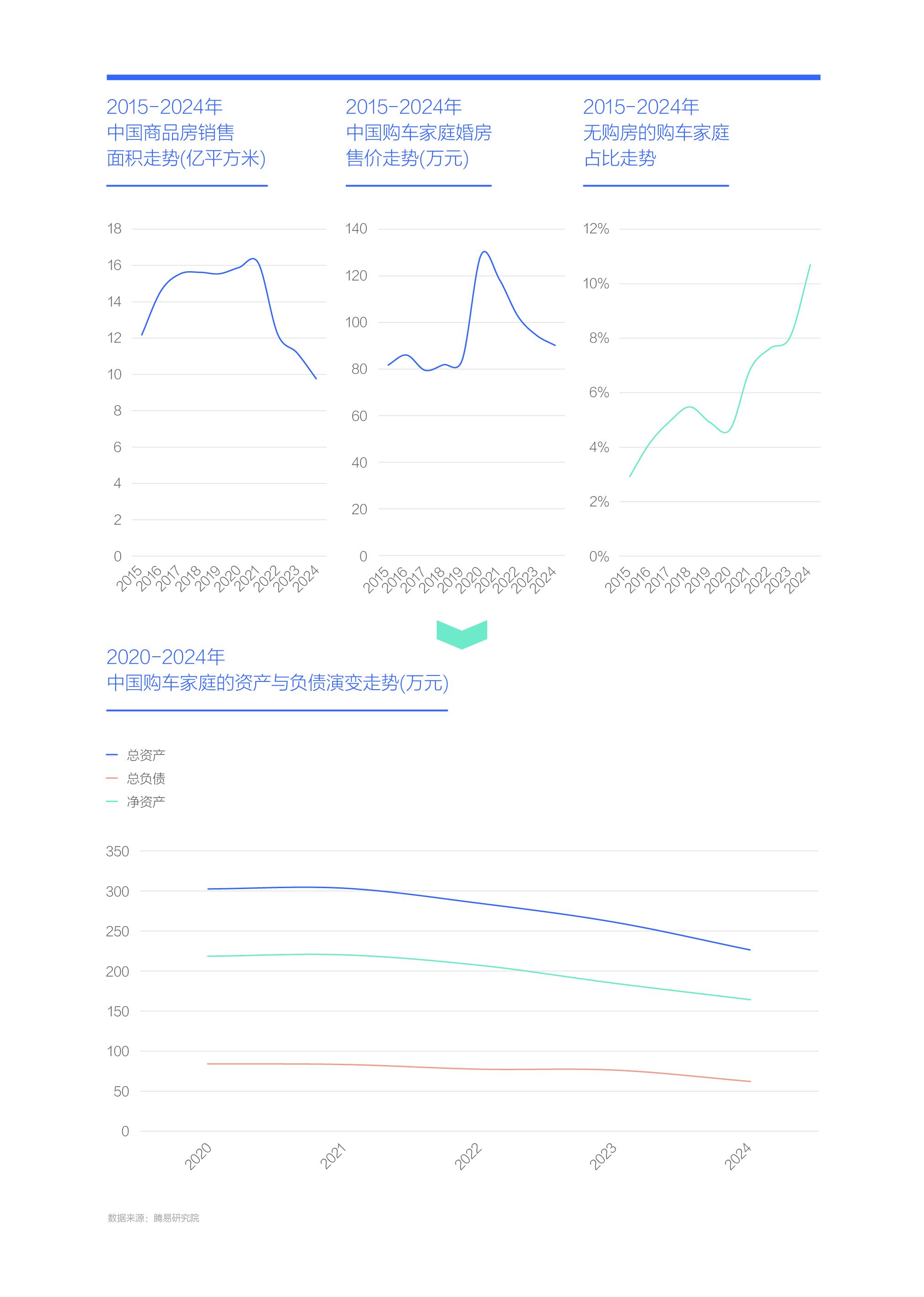 雖然中國購車家庭的結余加速提升,但凈資產加速下滑,2024年降至164萬元,快速擠掉部分房產泡沫