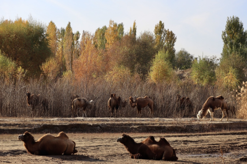 在豐草牧場自有的阿合依哈提牧場,近3500峰駱駝在3萬畝草場上自由徜徉,采食駱駝刺、梭梭、沙棗等天然植被。牧場采用“集中采奶、散養生活”模式,并引入德魯伊科技的BADGE 4G生物數據采集終端,實時監測駱駝健康狀況與活動軌跡,實現傳統放牧智慧與現代科學管理的完美結合。