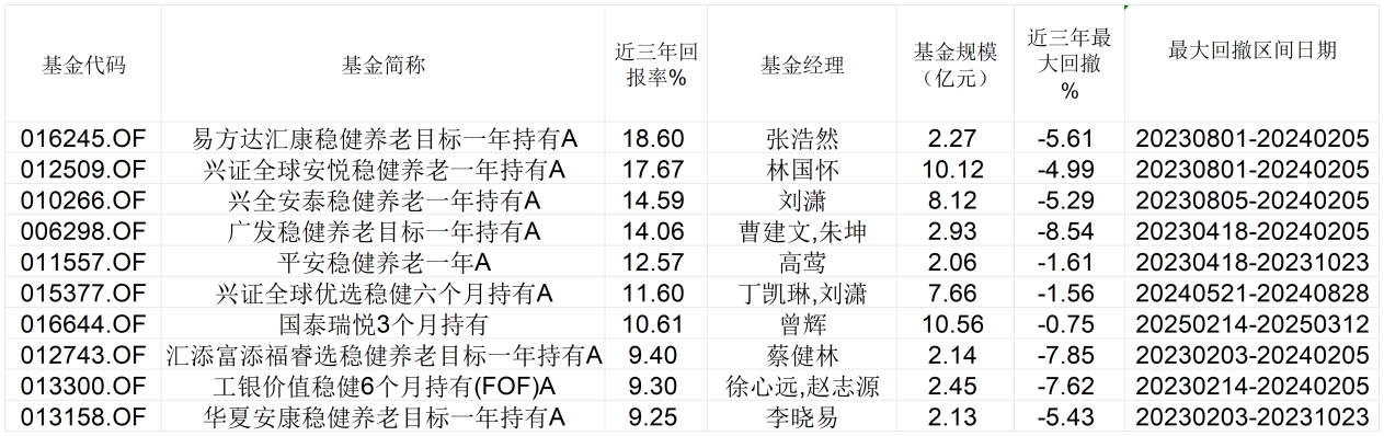表:截至三季度末,近三年來回報率靠前、回撤率較小的10只FOF明細