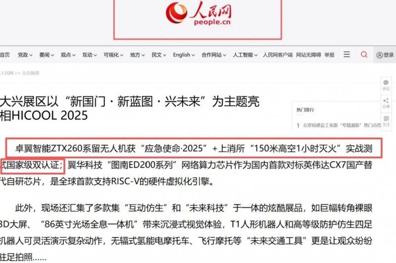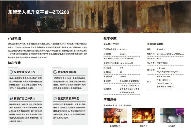 其中,在報道中特別提及ZTX260系留無人機,并著重強調了其獲得的“國家級雙重認證”:該產品不僅作為核心裝備入選了“應急使命·2025”城市高層建筑滅火演習,更通過了國家消防裝備質量檢驗檢測中心(上消所)的嚴苛標準實飛檢驗,創下150米高度連續噴射泡沫滅火劑1小時的國內紀錄。這標志著國家權威媒體對卓翼智能產品技術領先性、創新性與實戰可靠性的高度認可。