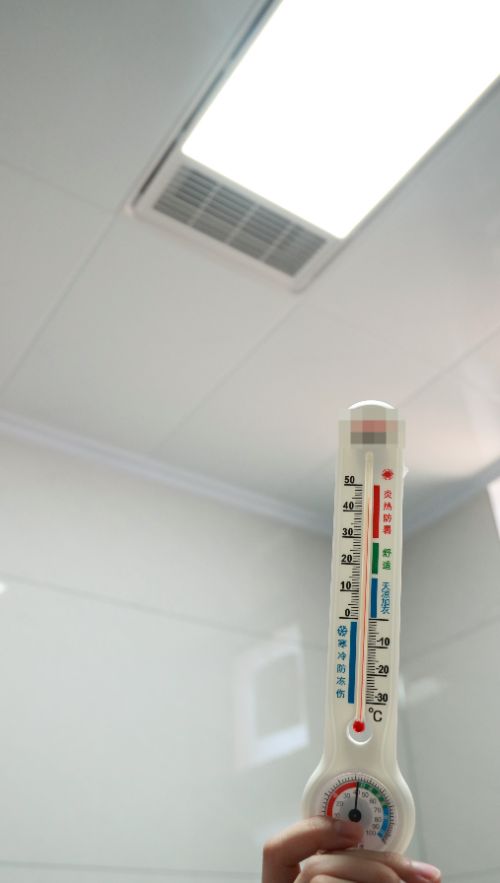 我們采用專業紅外測溫儀與高精度溫度計,在4-5㎡的密閉浴室,對這款浴霸的溫度表現進行嚴格測試。結果顯示,開啟僅1分鐘后,整體室溫即可飆升10℃以上,真正實現“開機即暖”,告別洗浴前的漫長等待。