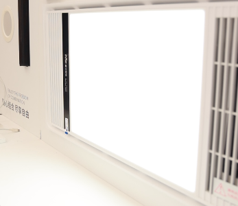 我們可以直觀看到,這款浴霸具有超大發光面,實測開啟后的照明亮度超過150lx,顯著高于國家標準(100lx),光線均勻柔和,確保浴室每個角落都清晰可見。