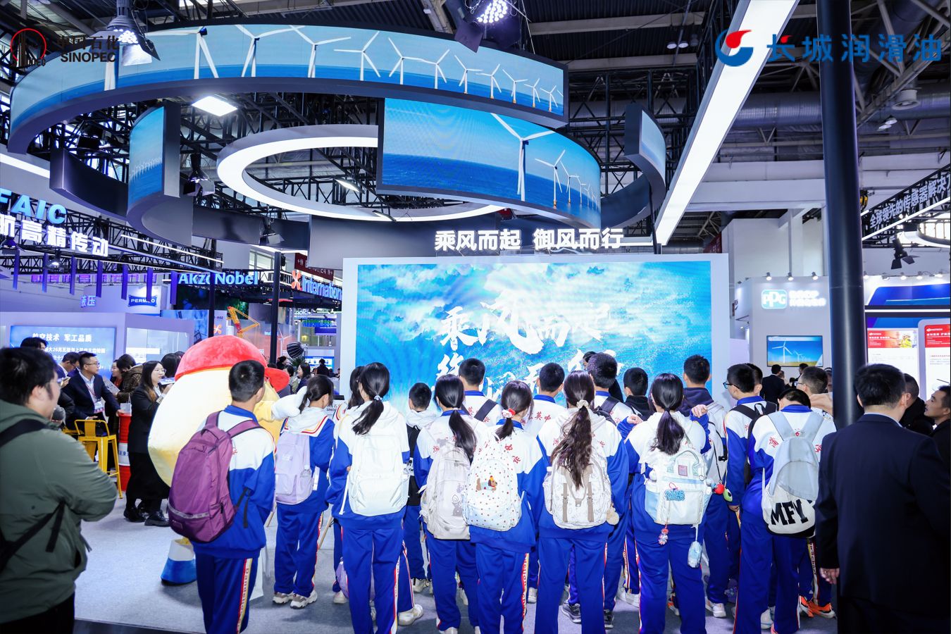 2025年10月20日至22日,2025北京國際風能大會在北京·中國國際博覽中心(順義館)順利舉辦。中國石化潤滑油有限公司聯合中國石化上海石化股份有限公司、中石化湖南石油化工有限公司、中石化重型起重運輸工程有限責任公司、中石化(上海)石油化工研究院有限公司、中石化國際事業天津有限公司,首次以中國石化全產業鏈整體形象亮相風能展,深入貫徹集團“堅持綠色低碳發展”部署,立足“產銷研用”協同,推動石化產品精準對接風能產業需求,以央企之力為中國風電發展賦能。