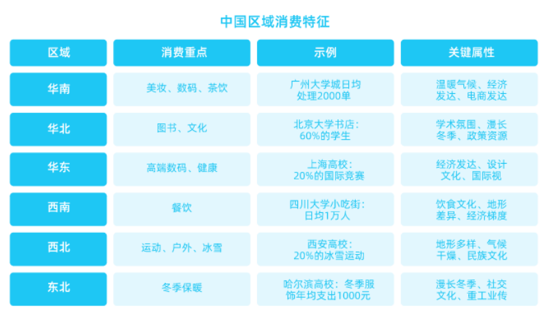 地域消費差異顯著:京滬學生關注潮流數碼和設計師品牌,西南學生看重性價比,華南偏愛美妝與數碼,華北則側重圖書文化消費。
