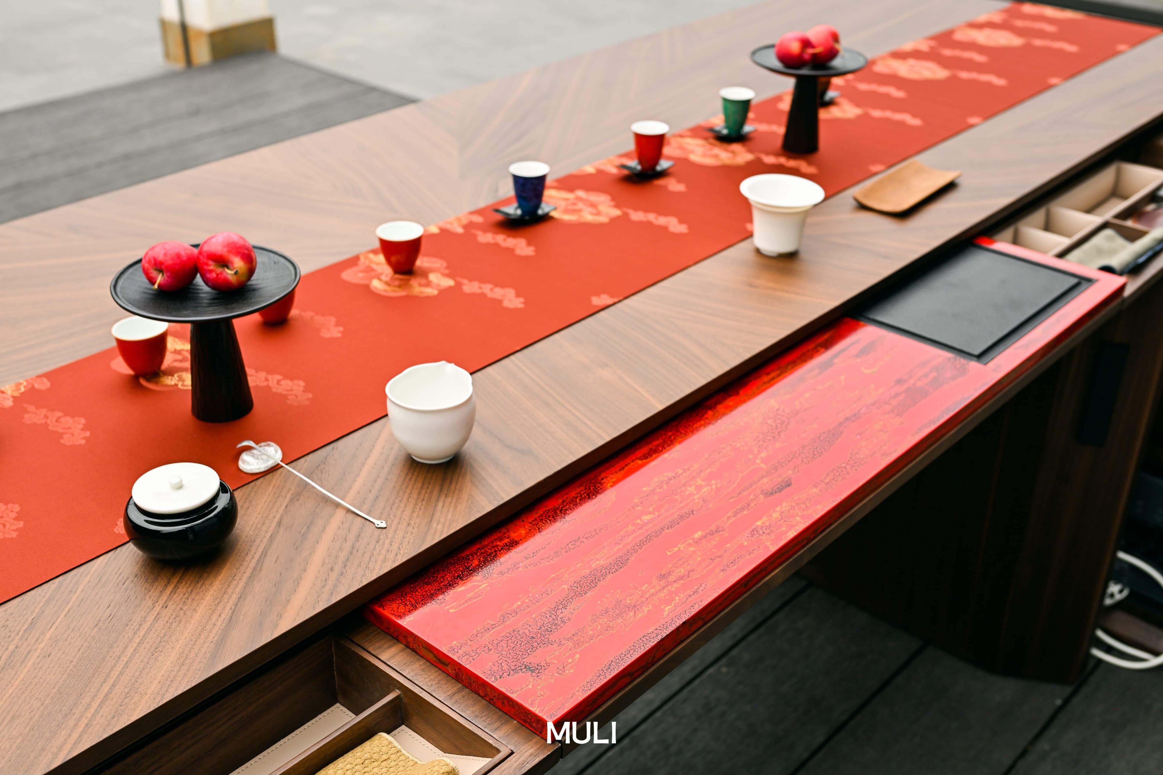 作為中國國家畫院訪問學者和巴黎設計周中國周特邀藝術家,龍一老師將非遺文化的大漆工藝與國潮、時尚和藝術結合起來,與木里木外共創了大漆茶桌、大漆餐桌、大漆茶具等作品,讓大漆煥發新生,又賦予現代家居深厚的文化內涵與藝術魅力。