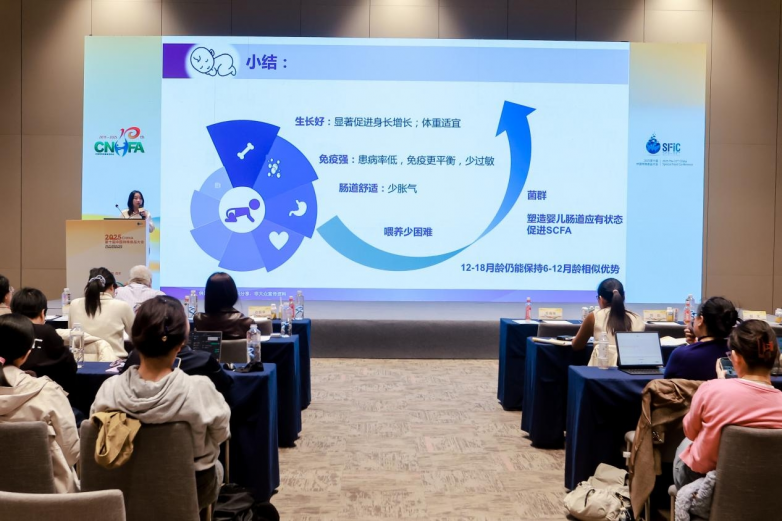 在嬰配粉領域,嬰幼兒的特殊營養需求始終是臨床與科研關注的重點。在兒科大會現場,北京大學第三醫院李在玲教授發表主題報告,公布了部分水解配方臨床實證成果。研究顯示,部分水解配方奶粉能夠有效降低寶寶的過敏發生率,同時能顯著改善溢奶、吐奶、脹氣等胃腸道癥狀,以及嬰兒排便困難與糞便性狀,切實提升嬰兒生活質量,為寶寶在成長發育期提供更高品質的營養補充。