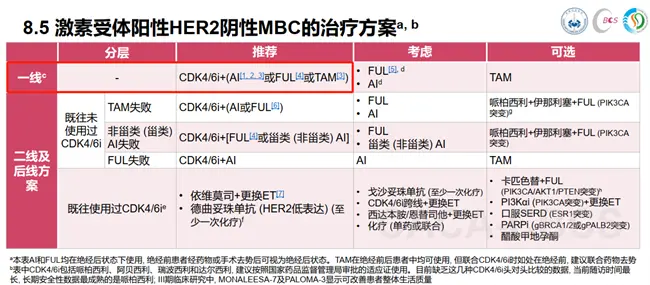 · 內分泌治療:它是HR陽性晚期乳腺癌的治療基石,即使存在內臟轉移,以內分泌為基礎或聯合治療依然是優選治療方案,其基本藥物包括他莫昔芬、芳香化酶抑制劑(AI,包括來曲唑、阿那曲唑、依西美坦)、氟維司群等。