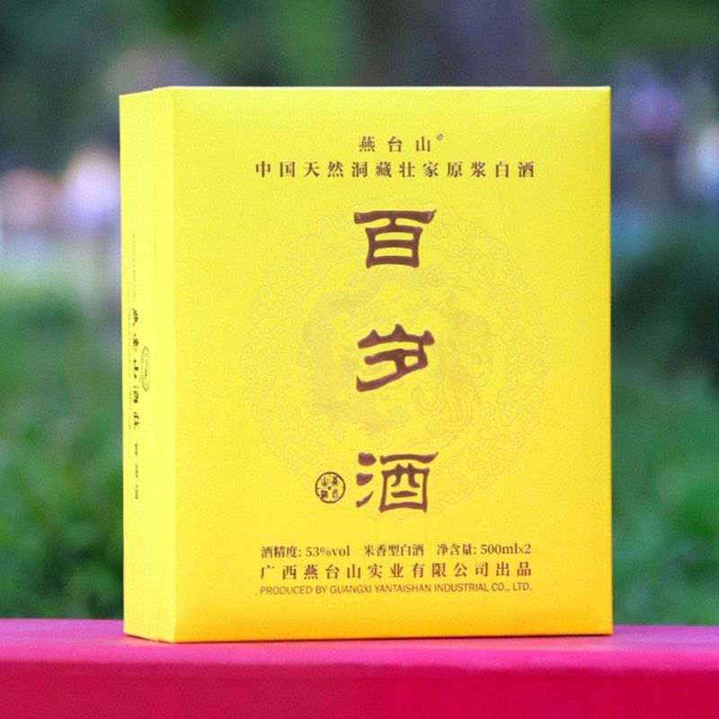 燕臺山百歲酒,甄選三大核心原料匠心釀造:其一,世界十大地下暗河之一中國玄河之泉水,此水富含多種礦物質,酸堿度適中且為天然磁化小分子水,是釀酒的稀世好水;其二,選用富含鐵、鎂、鈣等多種微量元素的優質有機大米;其三,搭配采用優質大米粉、野生草本植物、陳年優質曲丸等為原料,以祖傳配方精心配制而成的酒曲。采用非物質文化遺產—“燕臺山壯家白酒釀造技藝”精心釀制,然后儲藏于恒溫恒濕的燕臺山酒莊天然溶洞中,歷經10年時光洞藏陳化,最終成就其“清亮透明、香氣典雅、綿甜爽凈、香味協調,且洞藏風格獨具一格”的卓越特質。