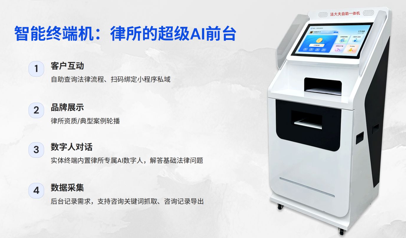 AI律所智能體聚焦律所數字化運營需求,通過深度融合線下終端與線上小程序,構建一站式綜合法律服務平臺。平臺為律所執業律師提供客戶管理、智能咨詢、品牌展示、服務配置等核心功能,形成“智能前臺”與“強大后臺”的雙軌體系——智能前臺全天候服務客戶,強大后臺則賦能律師高效工作。這一創新架構全面提升了客戶服務體驗與律所運營效能,是律所邁向數字化未來的可靠戰略伙伴。