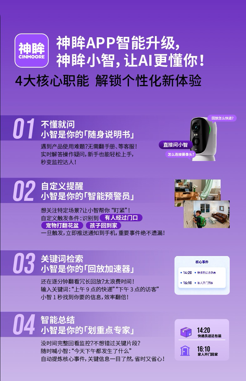 A5: 這是被舊技術長期壓抑的真需求。防盜早已不是監控的唯一選擇,當家門口的攝像機記錄下孩子第一次獨自回家的畫面,當記錄下爸媽年邁的身影,每個家庭都有了自己的影像記錄中心,今天的用戶,對于情感的撫慰,科技的隱形才是真剛需。忘記充、忘記維護,有形是能力,無形是關懷,您希望它是需要您手動回放數小時的冰冷監控,還是一個能自動為您剪輯好30秒暖心短片的伙伴?神眸將二者合而為一,設備只是AI入口,從此有一個人生回憶的重要記錄設備,才是科技回歸人性的歸屬。