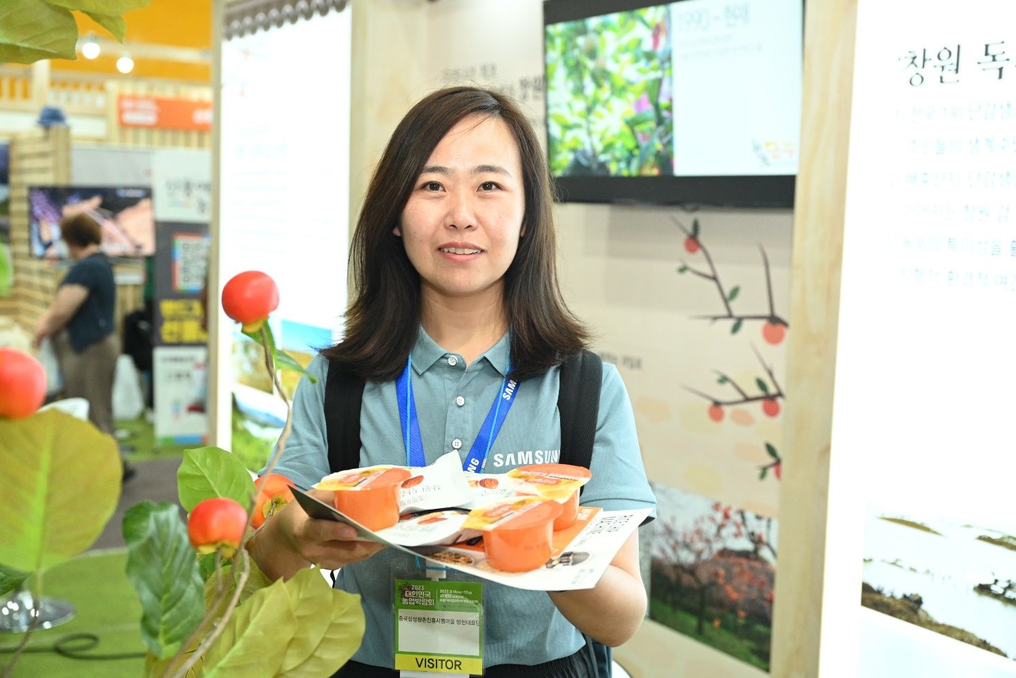 “村帶頭人訪韓”活動期間,楊維娜參觀農博會柿子深加工產品