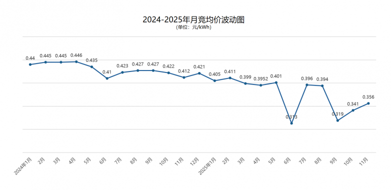 以江蘇電力市場為例,自9月進入連續結算試運行以來,連續3月的月度集中競價為0.319、0.340、0.356元/kWh,波動起伏極大。在進入連續結算試運行前,月度集中競價浮動在 0.38-0.44 元/kWh 之間,與長協價差在 0.001-0.089 元/kWh。且2026年可能存在月度競價與長協價格倒掛的月份,極為考驗售電公司的交易能力與履約能力。
