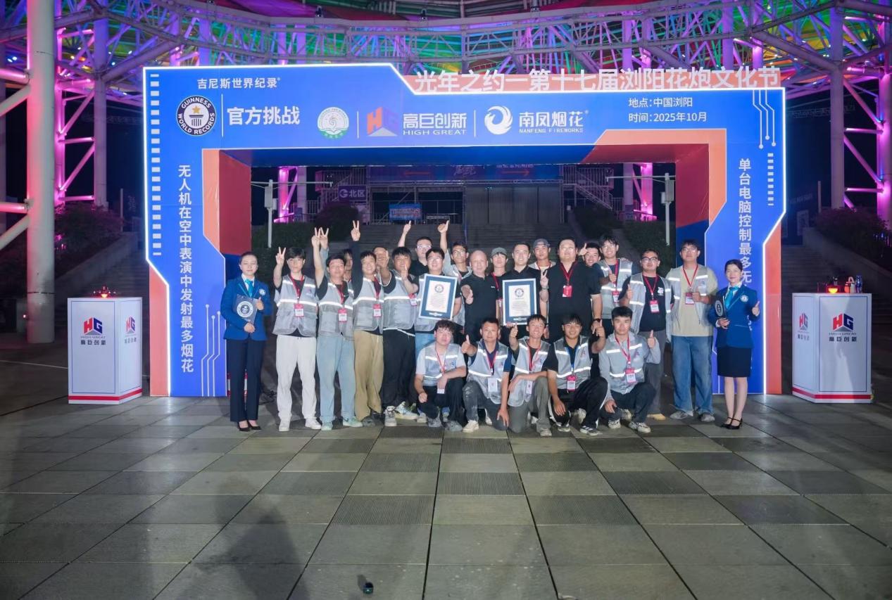 兩項世界紀錄的同步達成,絕非偶然。面對近1.6萬架無人機協同控制、掛載煙花精準釋放的極高要求,高巨創新依托其作為20年生產廠商所積累的硬件優勢與行業領先的飛行控制算法,確保了大規模集群的穩定飛行與動作一致,最終圓滿完成了這場技術與管理的極限挑戰。