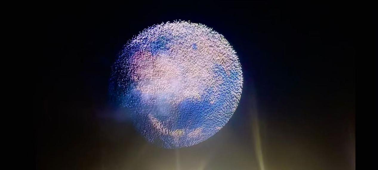 當夜幕降臨,科技之光再次綻放。當晚,近1.6萬架無人機騰空,成功刷新“單臺電腦控制最多無人機同時升空”紀錄。表演以“一花一樹一世界”為主題創意編排:無論是“一朵屬于我的煙花”、掛載流星煙火的“空中之樹”,還是碩大逼真的3D立體地球,都迅速出圈,尤其是“空中之樹”憑借其獨特設計在社交媒體被廣泛傳播。這不僅是規模的勝利,更是集群控制算法可靠性與藝術感染力的雙重勝利。