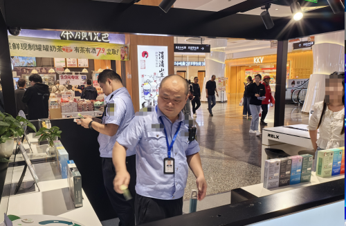 (圖為:洪山區煙草專賣局聯合市場監管局對光谷泛悅匯商戶進行檢查)