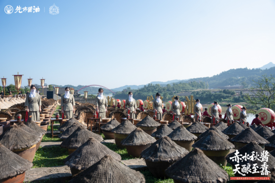 當指尖、聲韻里的非遺煥新時,釀造非遺也在河畔書寫堅守。赤水河旁的先市醬油百年古曬場,每年霜降都會響起鼓樂 —— 這是釀造非遺的 “秋油大典”,像蜀錦的 “祭機儀”、蘇繡的 “開針禮”,滿是對傳統的敬畏。傳承人身著素衣,循 “青史啟卷”“禮正乾坤”“三重獻祭”“醴破天光” 四幕古儀,敬天謝水源陽光,取油品三載醇香,封藏候下季發酵。圍觀者里,有蜀錦藝人點頭:“和我們調織造節奏一樣,每一步都在跟自然‘商量’。” 這琥珀色的秋油里,藏著 13 道古法工序的巧思,從選料到發酵,都要適配當地溫濕度與微生物,恰如蘇繡選絲看季節、評彈守韻創內容,都是 “順自然、守本味” 的匠心。