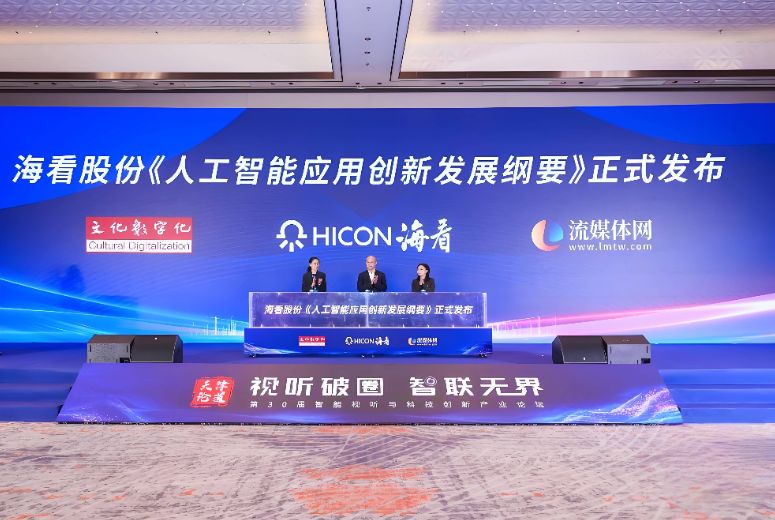 10月31日,海看網絡科技(山東)股份有限公司在“天津論道暨第30屆智能視聽與科技創新產業論壇”上正式發布《海看網絡科技(山東)股份有限公司人工智能應用創新發展綱要》(以下簡稱《綱要》)。《綱要》將在《文化數字化》雜志、流媒體網同步刊發。