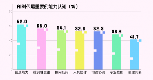 面對焦慮,大學生并非被動接受,而是主動探索應對策略。調研顯示,62.3%希望掌握AI以駕馭工具,59.7%選擇強化專業能力。在他們看來,AI 時代最核心的能力并非 “超越 AI”,而是 “與 AI 互補”。