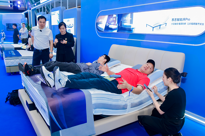 在產品體驗區,慕思重點展示了鴻蒙智選慕思智能床。該產品接入鴻蒙生態,實現與全屋智能設備的場景聯動;采用左右分區設計,支持0.5級精微調節,滿足雙人差異化睡眠需求;搭載6大分區動態支撐系統,為肩、背、腰、臀、腿等部位提供精準承托;具備智能鼾聲干預功能,識別率超過80%,可在監測到鼾聲時自動微調頭部位置;支持7+N種智娛模式,滿足閱讀、觀影等多樣化場景需求;采用非接觸式睡眠監測技術,生成個性化睡眠報告;產品通過30000次耐久性測試,確保長期使用品質。現場參會嘉賓在體驗后表示,產品的智能調節與健康監測功能展現了技術在睡眠場景中的實際應用價值。