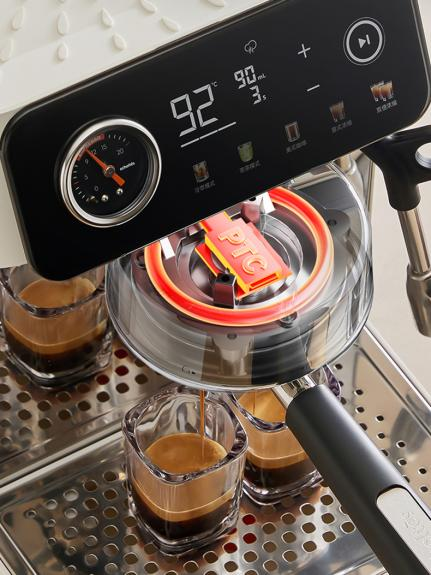 配備700ml儲水式萃取鍋爐,真鍋爐萃取,連續出杯不失溫,確保每一杯咖啡的出品皆是醇香馥郁。升級熱平衡式沖煮頭,加入PTC加熱模塊,在萃取過程中能夠穩定保持沖煮頭恒溫,有效避免因溫度波動而流失咖啡風味。結合儲水鍋爐的穩定供熱,讓每一杯咖啡萃取都如專業咖啡館般出色,輕松在家享受高品質咖啡體驗。