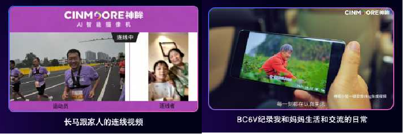 神眸V1,我們穿戴相機從BC6到BC6 Plus到BC6 V、BC6 V1這是第四代了。我們之前也很糾結,我們一直是做安防的,BC6和BC6+我們偏向于安防,從BC6 V轉向了運動相機。我們整個圖像質量、外觀也更像一個運動相機,我們的APP也是全部重新打造,更加有利于拍攝。
