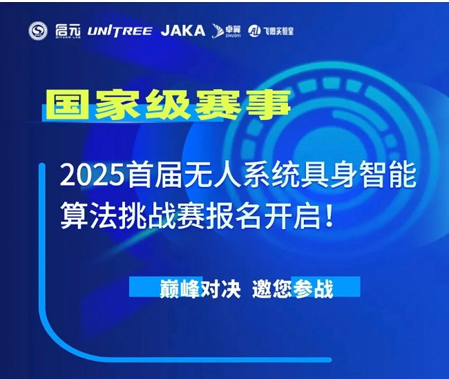 卓翼智能作為核心技術支撐單位,深度參與了“2025首屆無人系統具身智能算法挑戰賽”。該賽事由中國指揮與控制學會主辦,聯合啟元實驗室(聚焦國產大模型前沿)、宇樹科技(全球具身智能硬件領軍者)、節卡機器人(協作機器人領域技術先鋒與革新者)、卓翼飛思(無人智能領域先鋒)、古月居(機器人技術社區與ROS教育平臺)、北京連界創新技術股份有限公司(智能變革核心驅動力)、清華大學、北京化工大學、安徽大學等單位,傾力打造的。該賽事旨在推動具身智能的應用和技術轉化,促進產學研用協同創新。憑借國家級學會的權威背書,大賽為行業人才培養提供了高規格平臺,助力學生掌握前沿技能,為未來發展搶占先機。