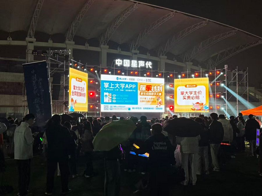 與許多僅聚焦于決賽夜黃金時段的品牌贊助不同,掌上大學此次的校園投入展現出了更長期的布局。據了解,其路演活動從當天白天便已啟動,并貫穿至晚間決賽結束,形成了一次完整、持續的品牌展示。即便晚間露天賽場秋雨飄灑,其路演點位依然保持運營,這與學生撐傘觀賽的場景共同構成了當晚的真實畫面。
