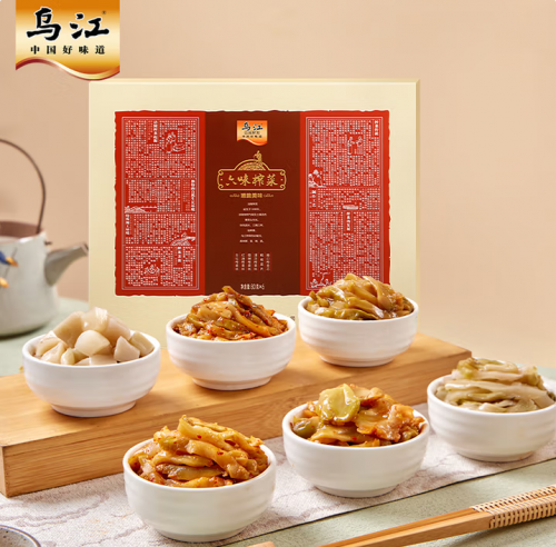 烏江六味榨菜是烏江榨菜專為禮贈場景打造的禮盒產品,其中包含六款不同風味的榨菜,覆蓋多樣口味需求。原料方面,禮盒甄選重慶涪陵的優質青菜頭,為榨菜的核心口感奠定基礎。工藝層面,烏江六味榨菜均遵循“三清三洗”“三腌三榨”的非遺制作工藝,歷經13道工藝、28道工序,最終造就鮮香嫩脆的穩定品質。正是對食材本味與傳統工藝的堅守,讓烏江六味榨菜禮盒成為兼具地域特色與實用價值的禮贈選擇。