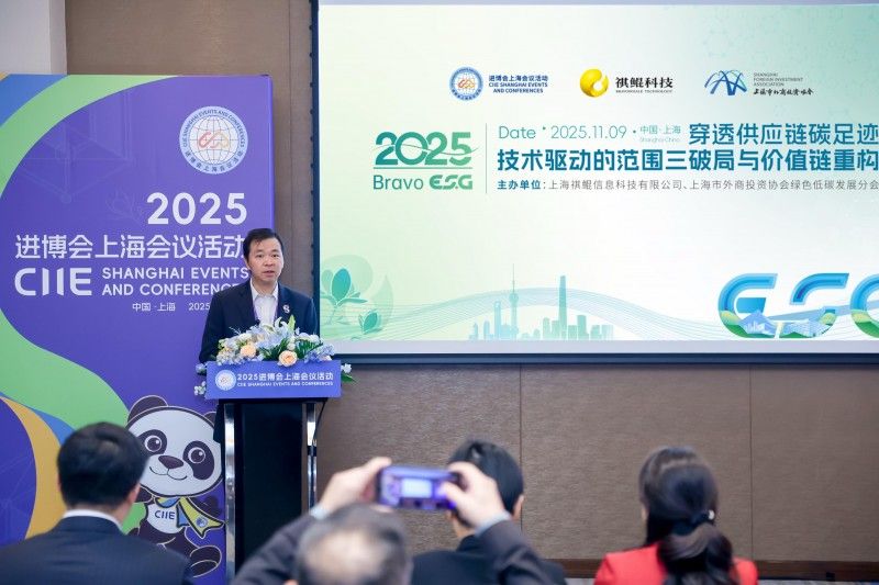 在11月9日2025年進博會上海會議活動中,由祺鯤科技與上海外商投資協會綠色低碳分會共同主辦的“供應鏈碳足跡——技術驅動的范圍三破局與價值鏈重構”研討會上,來自世界500強、央國企、國際供應鏈示范企業的決策層共同探索供應鏈減排的高效協同路徑。虹橋國際中央商務區管委會黨組成員、副主任楊旭波和上海外商投資協會副秘書長丁遂亮出席活動并致辭。